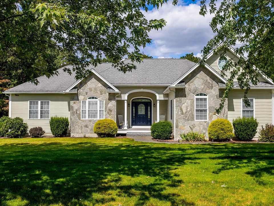 A Ranch like no other! Here is a sneak preview of original owner's pride. Enter front covered porch to elegant 7'X9' foyer, with leaded glass door & sidelights to Great room... Such ambiance with 12-foot ceilings and oak flooring, plus double sliders to 32'X12' trex deck overlooking an amazing paradise, with resort style 18'X36' inground pool, pool house & tiled half bath. Open concept kitchen with custom maple cabinets, decorative tile backsplash, professional vent hood and gas cooking, brand new appliances, granite breakfast bar for 6, walk-in pantry, dining area plus a formal dining room, and glimmering tile thru kitchen, separate laundry room and half bath. Living room has stunning stone hearth and gas fireplace. And bright Master bedroom will not disappoint, with trey ceiling, eyebrow windows for extra light, his/her walk-in closets, and private bath w/jacuzzi soaking tub. Two addl. bedrooms have Jack and Jill bath and double sink vanity, giving the kids a little privacy of their own. Second floor attic is finished...great for crafts, play or office and lower level has the perfect guest room with it's own fulll bath and double sink vanity. There's also a work-out room downstairs and the pictures here will tell the lower level, and outdoor story very well. New inside pics to follow or come to open house when showings start on Sept. 21 from 1:30-3:30pm. This home will WOW you! Subject to Seller finding suitable housing.