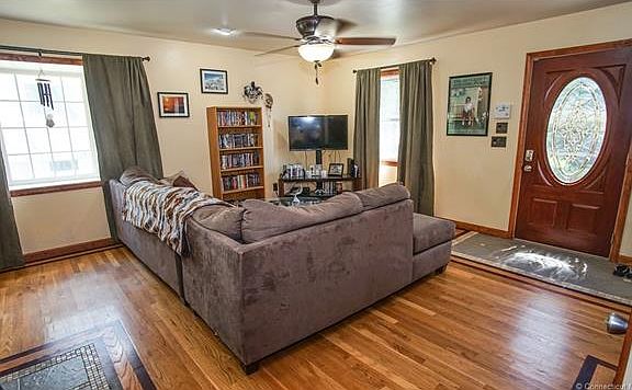Located in Maple Hill School District Totally renovated kitchen with cherry cabinets, granite counters and built in granite table, new appliances,tile backsplash, tile floor and gas stove. Slider leading to three season sunroom. Hardwood floors throughout first floor including living room with fireplace, formal dining room with built-in hutch and two bedrooms. There is one full bath on main floor, LARGE full bath upstairs and a half bath in lower level. Master bedroom with walk-in closet carpet and skylights. Second bedroom upstairs with built-ins. Finished lower level family room ,new furnace. One car garage with workshop. Great Neighborhood