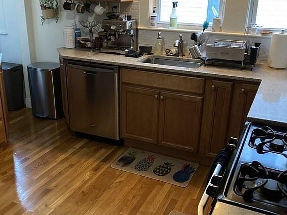 BALL SQUARE. Lightfilled 2nd floor unit. Two bedrooms plus third bedroom which he uses for exercise....beautiful master. Full dining room and well equipped kitchen with a pantry. Upgraded cabinets and kitchen counter. Dishwasher and microwave. Very open plan plus a back porch that is enclosed. NO smokers and no pets. Pictures of unit the size is much larger.