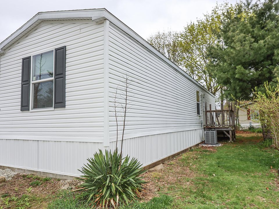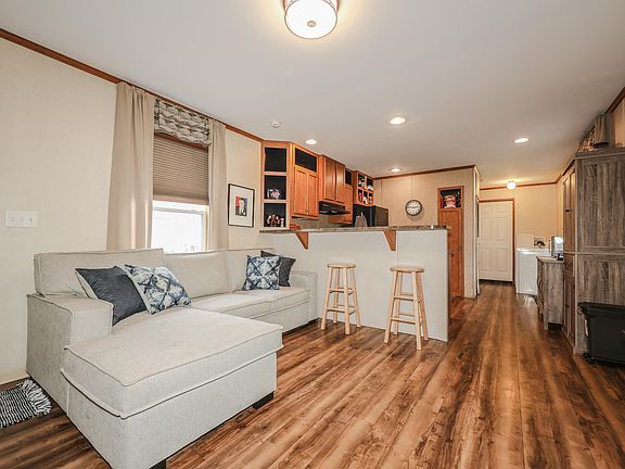 Just like new 2 bedroom home in Exeter Co-op! Very well maintained, nothing to do but move in! Large open concept kitchen and living room area with recessed lighting. Large full bathroom and laundry. Beautiful laminate flooring throughout! Bedrooms are located on either side of the home for privacy. The seller added Central A/C in 2020! Outside there is a newly upgraded and oversized deck to relax on! The backyard area is private and there is also a storage shed. This home is affixed to a concrete slab. If you are looking for easy living, this is it! The park features a recreation area with pool and playground. Don't delay on this home!