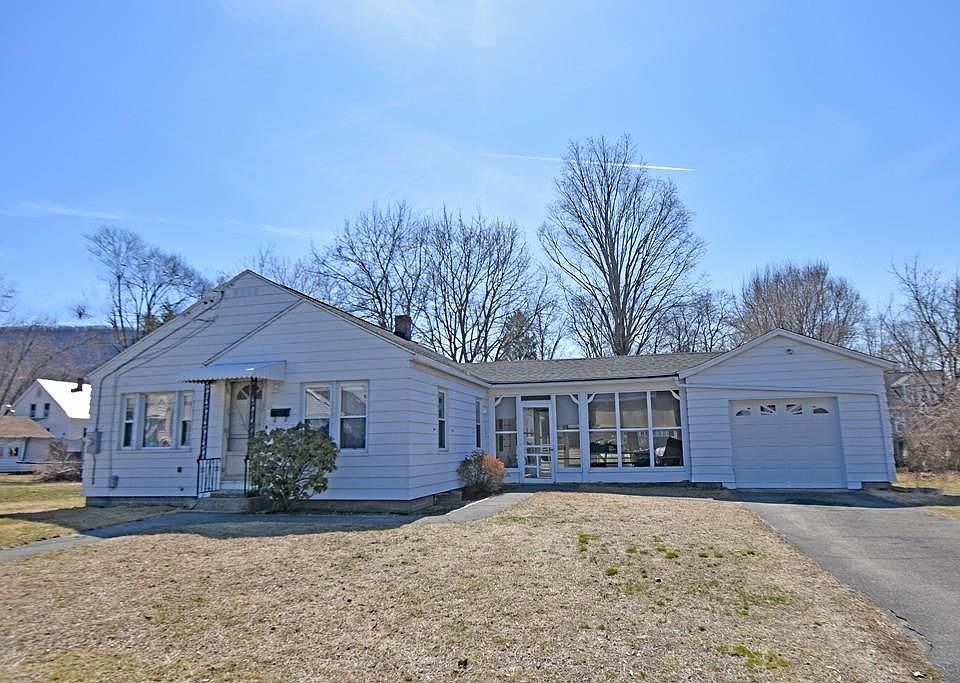 GOING - GOING - GONE is this 1950s ranch built for the ages. In the same family for over 60 years, you'll feel warm and welcome in this solidly built home. New architectural shingled roof, new high-efficiency Buderus heating system and HTP hot water tank, and brand new 100amp electrical panel and main service line. You'll enjoy original hardwood flooring throughout, including under the carpeted living room and bedroom. Are you more retro than contemporary? Looking value and convenience? You've found it all here! Full basement with good ceiling height, ideal for finishing. Spacious screened-in porch, attached one-car garage with Raynor door opener, and huge back and side yard with lots of space and Mt Tom views. Great location, convenient walk into downtown for shops, restaurants, schools and bike path and just a short drive to Northampton and I-91.