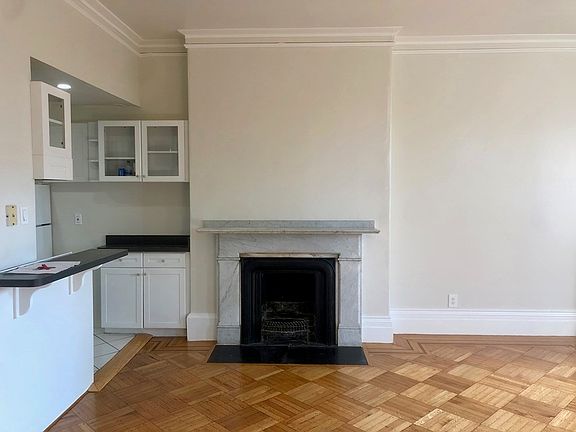 NO FEE. This unit is on the third floor of an elevator building and boats high ceilings and hardwood floors throughout. There are three closets in the unit offering great storage. In addition, there is a decorative fireplace and lots of windows giving great natural light. Heat and hot water are included. This is a must see!