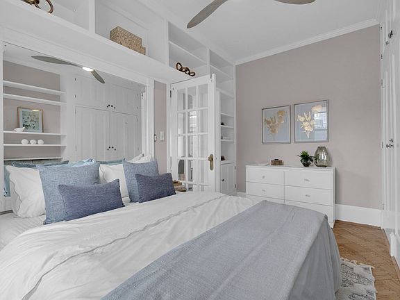 - Features: Ceiling Fan(s), Closet/Cabinets - Custom Built, Flooring - Hardwood