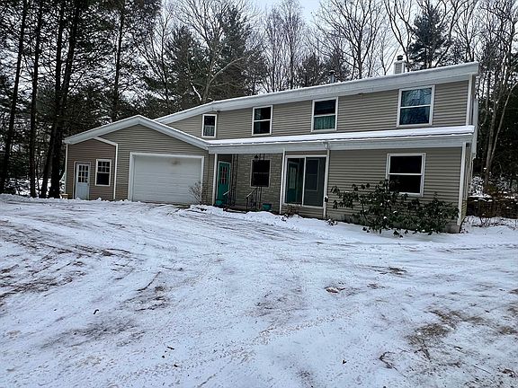 Multiple offers received. Offers due by Sunday 8pm, decision Monday by 3. Fascinating multilevel, open-plan contemporary home in Williamsburg, convenient to Northampton and Amherst. The heart of this home is the spacious, open plan kitchen/dining/living area on the main level that is great space for friends and family to gather and interact. Half a flight up you will discover the primary bedroom featuring hardwood floors, large closet space, a private back screened porch and ‘attic’ storage. A second sunny bedroom and bathroom with laundry complete the upper level. A half-flight down from the main level you will find the family room with its cozy hearth and wood-stove, an additional bathroom, and a semi-finished bonus studio/workroom with easy-to-access garage level waiting for your creativity; could make a great in-law, guest space or home office. Oversized one car garage, plus additional RV overhang that has been enclosed for sheltered storage. Appointment ONLY!