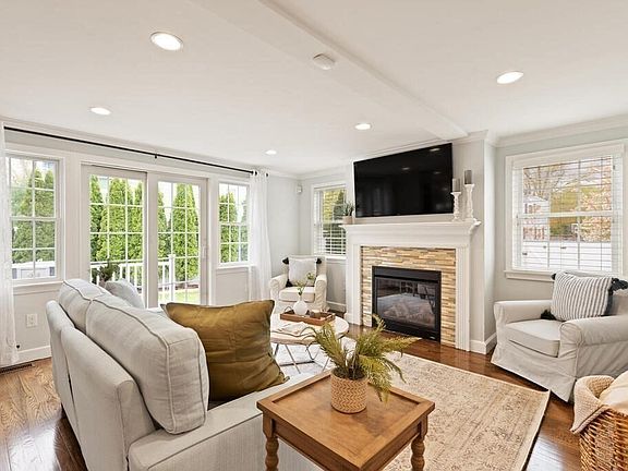 This home has it all right down to the white picket fence and attached 2 car garage! Situated on a large corner lot, this expanded cape is in one of Wakefield's most sought after neighborhoods. The open concept home boasts a gorgeous kitchen attached to a beautiful fireplaced living space making this the true heart of the home and the perfect place for cooking, relaxing, and entertaining. The kitchen features an oversized two-level quartz island with seating for 6, Subzero & Wolf SS appliances, refrigerated drawers & a full-size wine fridge. The dining room has an additional fireplace, adding even more appeal. A first-floor bedroom is perfect for guests or a home office. The upstairs has three generous sized bedrooms including the primary with ensuite & walk in closet. The great room provides even more living space as a family room, playroom, or more. Gather with friends and family in the backyard to enjoy BBQ’s, S’mores, and outdoor fun on the oversized deck and stone patio!