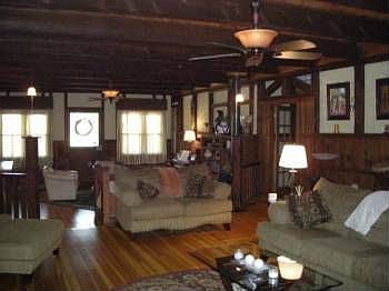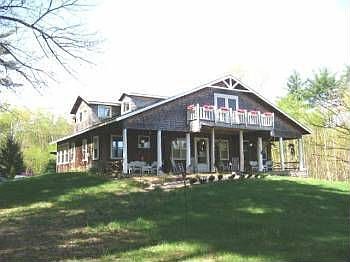 c 1910 "Arts & Crafts"lodge nestled in the Sebago Lakes region, 6 BR, Living room with fieldstone FP, Formal DR, eat-in kitchen, pool inground w/heater, Former B & B with seasonal views of Lake Sebago. 3 minutes to Sebago lake boat launch. Privacy!!