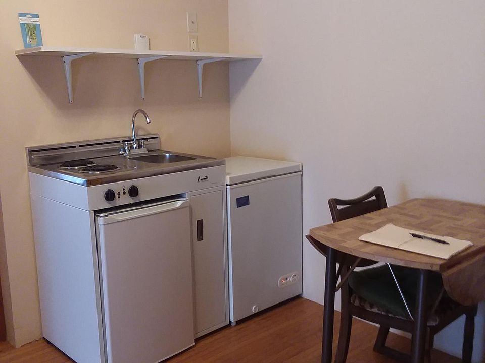 Across from court house, steps from down town. Efficiency studio, semi -furnished Utilities included single employed or retired