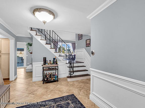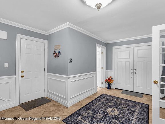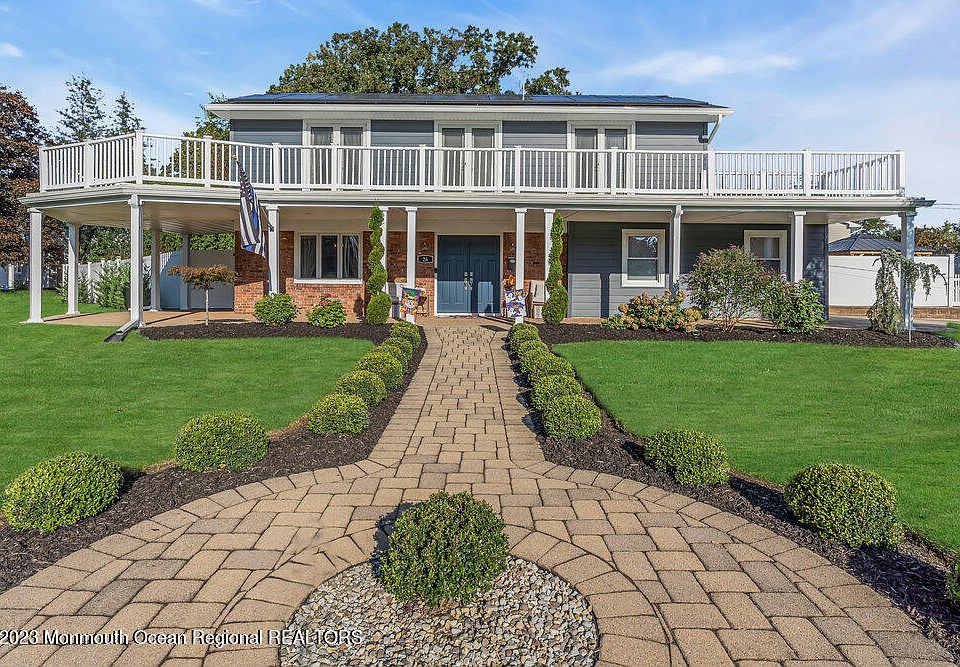 Updated 4 bedroom, 3 full bath home on an oversized 1/2 acre corner lot in sought after Candlewood! Features hardwood flooring, family room w/ fireplace & updated kitchen with wood plank tile flooring, stainless steel appliances & granite counter tops. Stunning custom molding throughout. Master bedroom has newer master bath. Pella french doors to fiberglass balcony. Partially finished basement provides extra living space. Central air, hot water heater, furnace, roof, garage doors, pool cover, liner & pumps all less than 4 years old. You'll enjoy spending time outside with family & friends in your inground pool, fenced yard, fire pit & bocce court. Paver driveway. Sprinkler system has well water, no water bills! Close to shopping, highways & the beach!