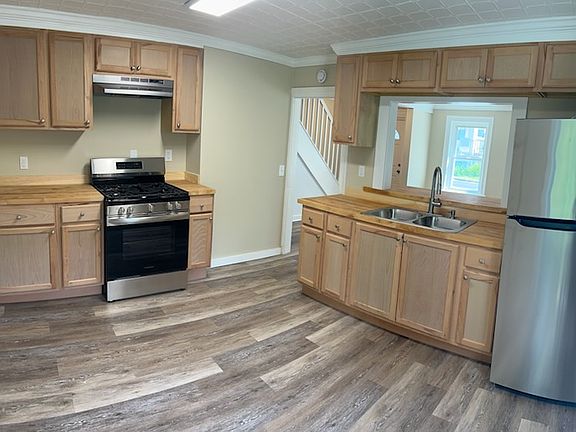 Newly remodeled two story traditional style home. Walking distance to Uptown Kingston. This three bedroom home has been updated to include newly renovated kitchen featuring new natural wood cabinets complete with beautiful butcher block counter tops. Brand new stainless steel appliances, including 5 burner gas range. First floor bath has been completely re-done and reflects brand new tub with surround, toilet and vanity. New flooring and freshly painted throughout. The first floor showcases the original tin ceilings, adding additional charm. The deck offers a view of the spacious back yard which is perfect for gardening, recreation, or simply relaxation. Come enjoy everything historic Kingston has to offer. the perfect location allows you to be just minutes from restaurants, shops, waterfront, art galleries, and conveniently located within 1,000 feet from the Kingston rail trail. Schedule an appoint today. House for rent. First month rent and security deposit required before move in. Tenant pays heat, electric, and WiFi. Owner pays water and sewer. Trash pickup is also included. One year lease required.