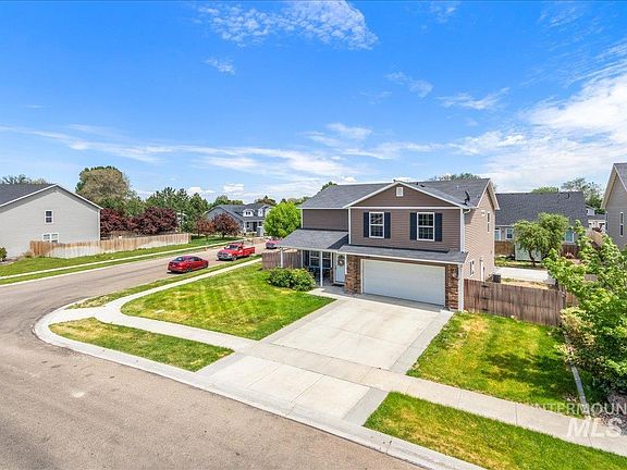 Huge lot, new carpet and fresh paint...this home has it all and under $400k! You'll love the rich hard flooring in the great room with gas fireplace framed by a custom mantle and hearth. The kitchen is huge and has ample cabinet space and a sprawling breakfast bar. Granite countertops and full tile backsplash with custom design behind the gas stove. The window above the sink overlooking the backyard makes the entire space bright and airy. The primary suite and additional 3 bedrooms are all located upstairs with a convenient layout. Primary suite has large windows and a private bathroom complete with a garden soaker tub, oversized vanity with sit-down make up area and large walk-in closet. Secondary bedrooms are large and the bonus room is so flexible. Outside you'll find a covered front porch and back patio to enjoy. Storage shed, side gate, and durable fencing are all part of the package! Convenient Nampa location near shopping, freeway and parks.