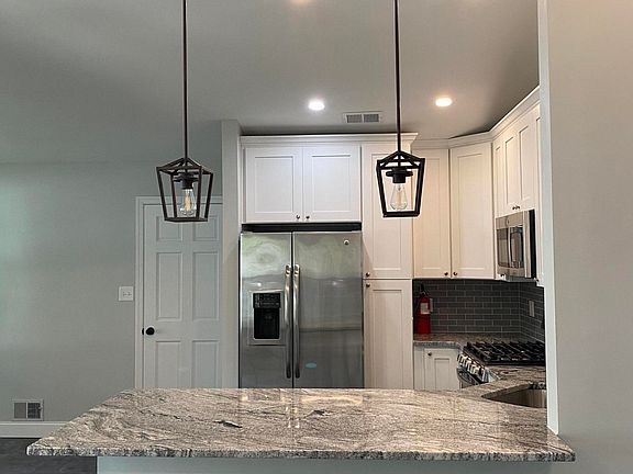 - RoomKitchenFeatures: Eat-In, Granite/Stone Counter, TRY/VLT/CATH, Dec Molding, Floor - Engineered