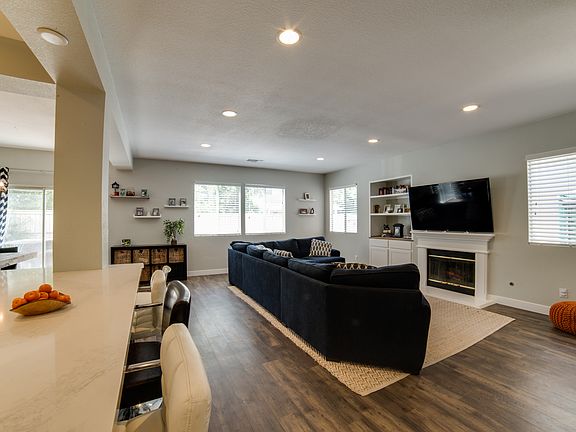 Beautiful 4 bed, 2.5 bath, plus den, has an open concept kitchen, dining and family room perfect for gatherings. The kitchen has durable quartz counter tops, solid wood cabinets, a counter depth fridge, a gas stove and a large walk in pantry with outlets. Upgraded high quality vinyl flooring is easy to clean throughout the bottom level and all carpet upstairs. The oasis backyard has a natural gas connection, built in BBQ, patio, jacuzzi, sauna & outdoor shower. House has great storage that was recently added. The Bryant Dual zone AC/heating system can be controlled via the MyEvolution phone app, giving you control over your cooling and heating costs even when you are on the go. The home is updated with energy efficient lighting and brand new 100% owned solar to keep your monthly electricity bills non existent. The master en suite is a great place to escape and features a large soaker tub, shower and his/her sinks. The garage has lots of storage, a Type 2 charger and Tesla charger as well as waterproof vinyl flooring. The neighborhood offers a park, basketball court, lap pool and picnic area.