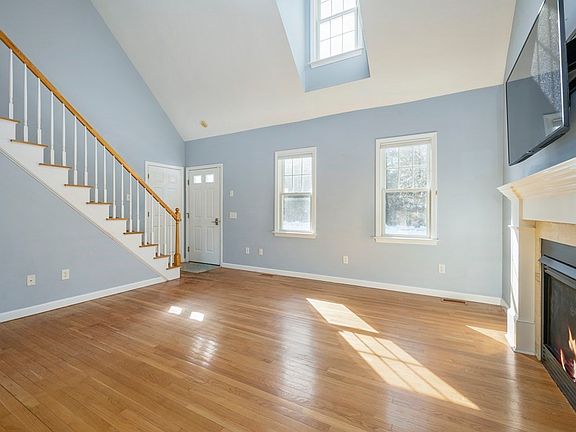 This charming 3 bedroom 3 bathroom Cape catches your eye as you pull into the driveway. Walk into a vaulted living room with a roaring gas fireplace and gleaming hardwood floors. An open concept first floor layout makes for a great entertaining space. New stainless appliances were added to your inviting kitchen and enjoy the convenience of first floor laundry and a bedroom for a first floor master option. Upstairs boasts 2 bedrooms with a full bath and a newly carpeted grand master suite, complete with a walk in closet and a private master bathroom. For additional living space, the basement has been finished with a home office and an extra living space, perfect for a play room or media room. This home is equipped with two forced hot air heating systems with central air- one of which being replaced in 2018. The .48 acre lot has been cleared and the exterior of the house was washed and freshly painted along with new siding on the dormers.
