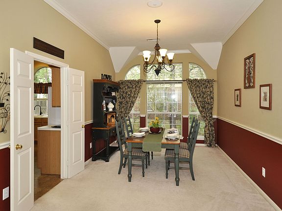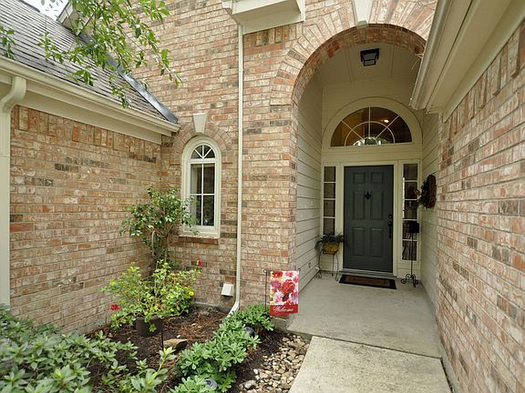 Outstanding single-story home with a great view of the neighborhood pond! Well maintained with fresh paint inside and out, new wood look tile throughout the living spaces and arched walkways. Primary bedroom has an adjacent bedroom great for a nursery, study or exercise and primary bath has been updated with a frameless shower and leathered granite counters. Secondary bedrooms are split plan layout with ceiling fans. Updated painted cabinets and granite counters with oversized dining room. High vaulted ceiling and large picture windows. Paver stone patio has great entertaining space and a large backyard to enjoy many activities. The home has double-paned windows, gutters, and a keyless front door entry. Alden Bridge is in the heart of The Woodlands with access to walking/bike trails two doors down.