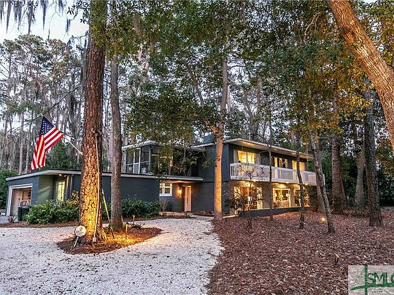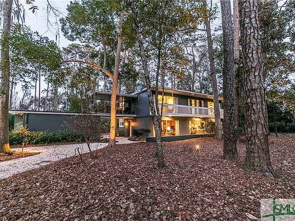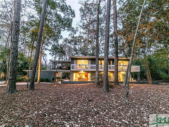 This mid-century modern home is a private sanctuary and surrounded by abundant wildlife. The home is immaculant with many updates, newly remodled kitchen with gas cook top, new flooring, fresh paint, stairs to second level feature floor to ceiling windows, additional over sized windows throughout the home bringing nature inside. Main floor features private office w/fireplace, living room with 2nd fireplace, half bath, kitchen, laundry, and dining room. The second floor features 3 guest bedrooms, 1 full bath, master bedroom, master bath, and a cosy screen porch over looking the property. The house has covered patios on main level and covered balconys on the second level. Exterior home features private drive, gutters, detached 2 car garage, up lighting on the exterior of the home and in the trees. This home is a short stroll to the river and marina.
