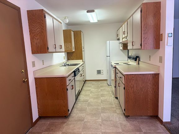 The apartment features a bright living area, a functional kitchen with ample cabinet space, and two comfortably sized bedrooms ideal for working from home or shared living. Enjoy the convenience of in-unit washer & dryer, eliminating trips to the laundromat, and garage parking, perfect for Wisconsin winters.