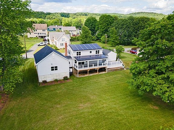 Vacation year-round at this nearly Net Zero, like new solar-powered home in Historic Riverside that had a major renovation in 2018, where it was taken down to the studs and insulated with super strong and energy-efficient spray foam. Heated and cooled with mini splits with a gas fireplace and stove to enhance the atmosphere of this incredible home, south facing with an abundance of natural light. All oak floors and recessed lighting. Custom build cherry cabinets in the kitchen with a center island, granite counters, and open to the dining and living room with a slider to the 12x34 porch and 24x16 deck with a fabulous view of the river. The breezeway with a slider connects the one-car garage on the left side, and the mudroom on the right connects the oversized two-car garage that is insulated and heated and includes a six-person hot tub and TV, and a walk-out basement with a Goshen stone patio under the porch and it’s own dock you can access the river and walk to the Boat Club.