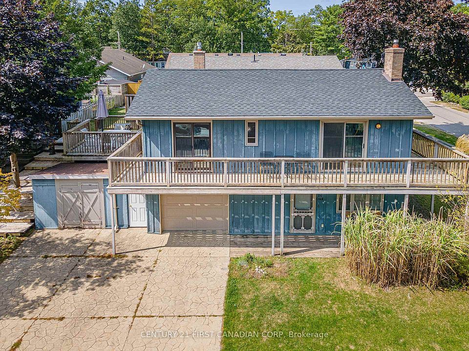 Welcome to this well maintained fully furnished three-bedroom home, located just a short walk from Grand Bends vibrant Main Street and Grand Bend beach. Situated on a desirable corner lot, and featuring a brand-new roof(September 2025), this property is being sold completely furnished, making it truly turn-key ready, perfect as a high-demand vacation rental, a cottage getaway, or a comfortable year-round residence. A spacious wraparound deck enhances both the function and appeal of the home, with multiple access points from both upper bedrooms, living room, and dining area creating a natural flow between indoor and outdoor living spaces. A side entrance from the driveway directly onto the deck provides convenient access for unloading and everyday use. Inside, the lower level includes an additional living area that can accommodate guests or provide extra space for family activities, along with direct access to the attached garage, while the upper floor offers a bright and welcoming living room. Additional features include a detached shed, attached one-car garage plus driveway parking for approximately two vehicles, making it ideal for accommodating renters or hosting family gatherings. The home also offers central air conditioning and efficient heating for year-round comfort. With its prime location, corner lot setting, turn-key condition, and functional layout, this property presents a rare opportunity to own in one of Ontario's most sought-after beach communities!