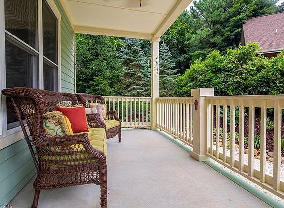 This Arts & Craft move in ready home in the highly desired Eastwood Village. Excellent floor plan, & one of the largest homes in the community that won't last long. Featuring a large master suite on main level with private deck overlooking a creek. Great room with open kitchen, stainless appliances, huge breakfast bar for dining, gas log fireplace, two covered porches w/views. 3 more bedrooms & 2 baths on upper level. All sitting on a cul-de-sac lot with mountain views. Highly desired Community
