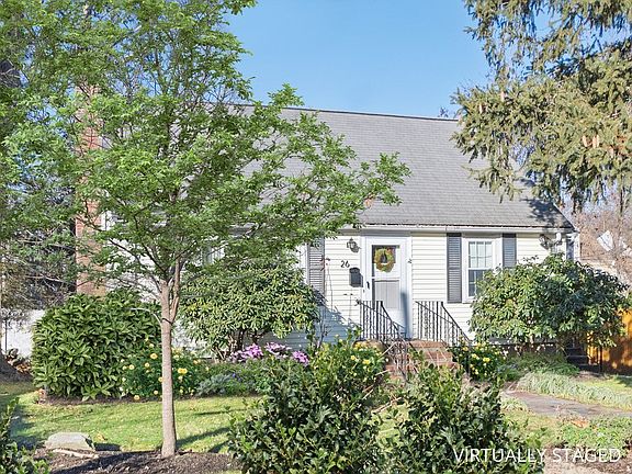 Nestled on a Tranquil Cul-De-Sac Bordering the Sought-After Belmont Line, this Charming Cape Offers a Serene Retreat. The Fireplaced Living Room Seamlessly Connects to a Formal Dining Room, Creating an Inviting Space. Enjoy the Natural Light Streaming through Younger Windows, While a Younger 2005 Roof Provides Peace of Mind. A Full Cabinet Kitchen with an Island Bar Adds Functionality and Style. Unwind in the Relaxing Enclosed Side Porch, or Retreat to the Walk-Out Semi-Finished Basement Den Featuring a Full Bath. Outside, the Private, Well-Landscaped Yard Offers a Tranquil Oasis. Additional Highlights Include a Younger 2008 Heating System and a New 2021 Hot Water Heater, Ensuring Modern Comfort in this Delightful Home.