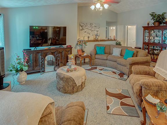 Lovely ranch situated on large lot located on the outskirts of town. Foyer entry w beautiful wood floors, front office & open floor plan. Kitchen is equipped w all appliances, kitchen island, tons of cabinets, walk in pantry, and looks into dining area & living room. Spacious living room boasts vaulted ceilings & gas fireplace. The sunroom w gorgeous view of neighboring lake is tranquility at its best . Main floor master bedroom & laundry room! Full finished basement has everything you need. Natural light shines into the family room. Separate media room walks into a lower level bedroom & out the sliding glass doors to the patio. Bedroom features a big window seating perfect for reading & napping. Rec room is an entertainers delight! Custom built bar, tons of seating area, 1/2 bath, & kitchen area for all your get togethers. Backyard features shed w workshop, deck, covered patio, & the BBQ shack for outdoor entertaining! Lower garage for storage. Inspections completete
