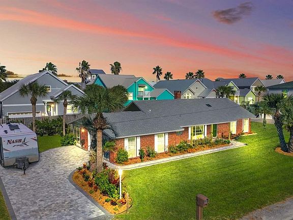 Location. Location. Location. This spacious home is walking distance to the beach and offers beach access too! The sea breezes that envelope this property are amazing. This lovely well maintained brick home offers over 1600SF and has a large living room and an additional family room with a 2 sided fireplace that is a centerpiece for both rooms. The roomy kitchen includes new quartz countertops, an eating bar, and stainless steel appliances. There is a screen lanai for relaxation and entertaining. The property is partially fenced. There is a paver sidewalk and fresh landscaping that offers great curb appeal and there is a long and wide paver driveway that leads up to a generous side entry 2 car garage so there is plenty of parking for your vehicles, boat, and RV. No HOA here so no additional fees and restrictions to worry about. Add a roof top deck or 2nd floor and you will have ocean views. Other updates include some new flooring, paint, and lighting fixtures. New garage door. Other updates include: new roof (2017), new plumbing (2018), new Carrier HVAC and hot water heater (2016). This wonderful location offers not only the perfect beach lifestyle but is also close to great dining, shopping, an Amphitheater, a fishing pier, and boat ramps. Termite Bond included for additional peace of mind.