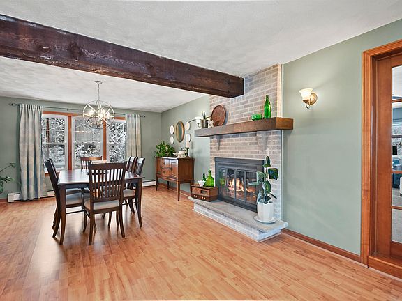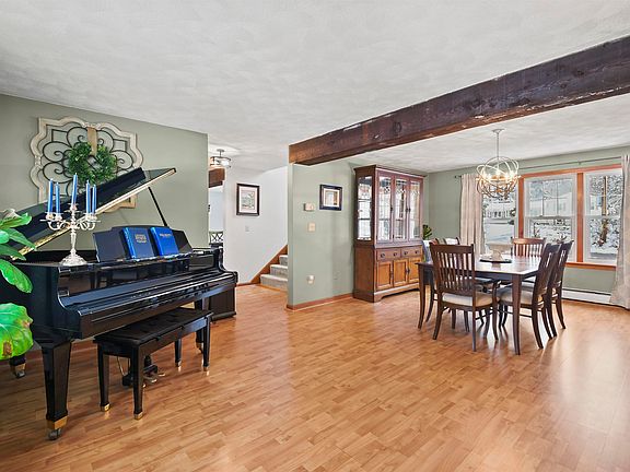 Welcome to this charming 3 bed, 2 bath oversized gambrel nestled on an expansive 1.5-acre level lot. The front-to-back living room exudes warmth with a cozy fireplace and distinctive beamed ceiling. The spacious eat-in kitchen/dining area showcases bamboo floors, stainless steel appliances, white cabinets, and a kitchen island, creating a perfect culinary haven. Providing access to the composite deck, the sunroom off the kitchen, featuring tile flooring, offers a delightful spot to relax and enjoy the scenic grounds. Unwind and enjoy the sun-filled family room with plush wall-to-wall carpeting. A convenient full bath completes the main level. Upstairs, discover generously sized bedrooms boasting ample closet space and another full bath for added convenience. Dual access from the bathroom to the primary bedroom. The lower level adds versatility with two large bonus rooms, ideal for a home gym, game room, or office space. This home truly combines comfort, style, and functionality in a picturesque setting. Don't miss the opportunity to make this your dream home! Showings begin Friday 2/2. Public open house 2/3, 2/4 12pm-2pm
