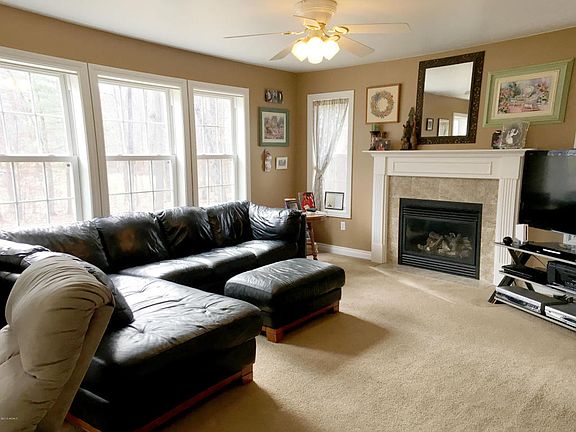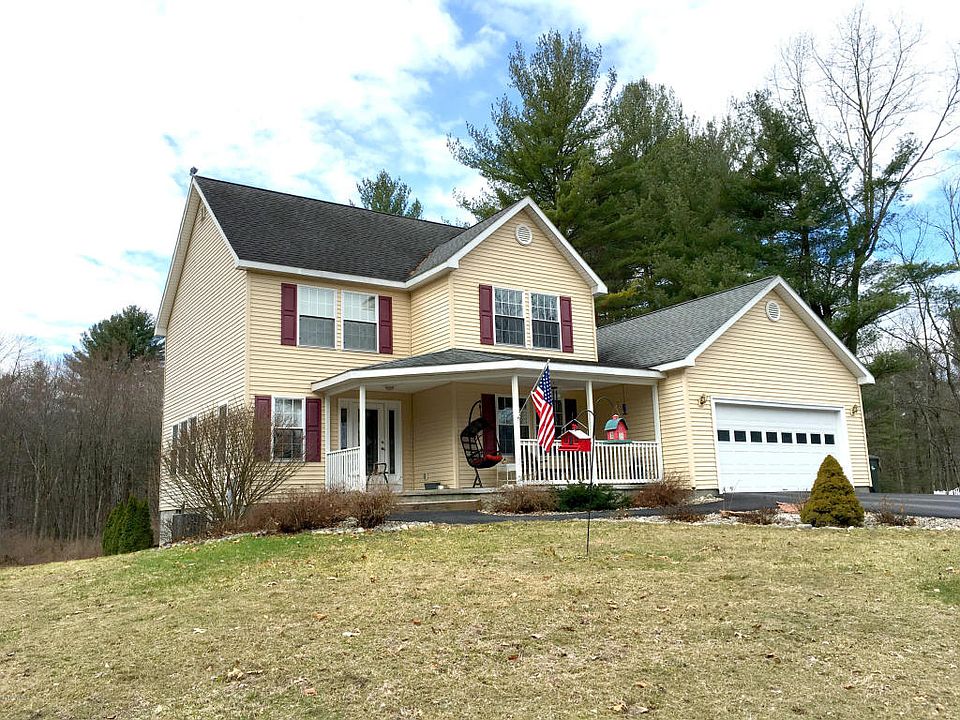 Your own personal playground awaits with this fantastic colonial on over 3 acres! Filtered river views, pool, hot tub, fire pit, basketball court and full walk-out basement, partially finished. Inside, a beautiful hickory kitchen with large island, large living room with gas fireplace, formal dining room, hardwood floors, second floor laundry room and 3 spacious bedrooms including a master suite with walk-in closet!