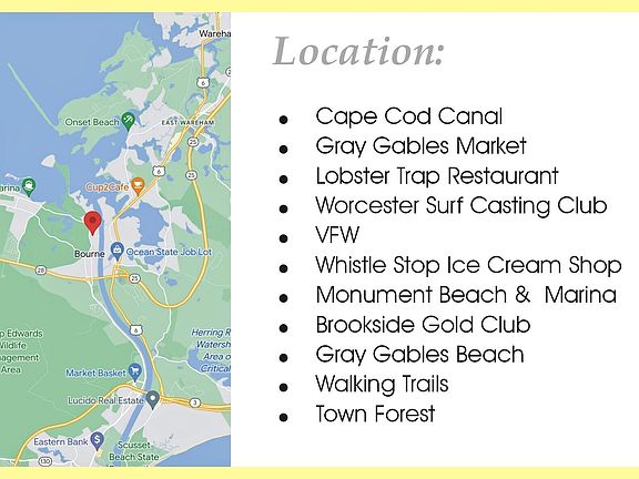 Nestled between the trees and set back off the street is this sprawling Ranch in Monument Beach, a village of Bourne. A sweet 3 bedroom, 2 bath one level living home. Grab your fishing pole, roller blades, binoculars & sun lotion to enjoy the day at the Cape Cod Canal. Recently updated in 2020 and ready for your special touch. The main bedroom has an adjacent room that can be used as a walk-in closet, sitting room or office with a private full bathroom. The washer/dryer hookup is just off the kitchen in the pantry, this area could be an adorable laundry room. So much potential in this unique property. Located on the Cape side of the Bourne Bridge and all the beautiful Bourne beaches. Great access to major highways and local shops & restaurants.