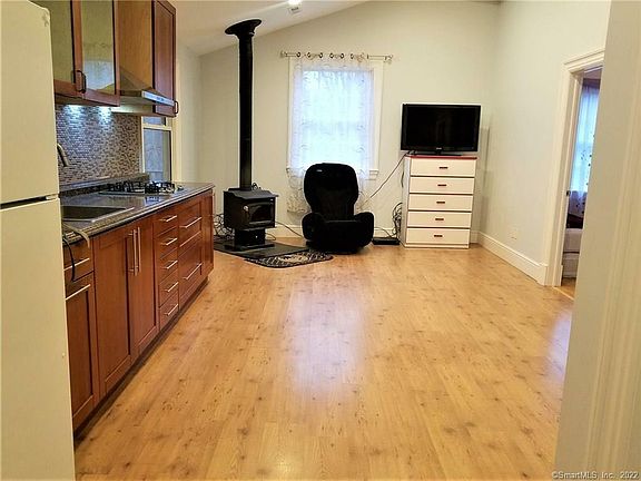 A Must See! All Utilities Included in this lovely rental unit attached to the main house with private entrance and private deck/balcony. Interior has hardwood floors throughout, open floor plan of kitchen, dining and living room with wood burning stove. Kitchen has granite counter tops and mid-century style cabinets. 2 bedrooms with large windows, cathedral ceilings and walk-in closets. The property is on a private circle with views of the woods. Utilities included are heat, AC, electric, water, cable TV and wireless internet. Close to trains, shopping, parks, golf and health clubs. West Redding is a great location for commuting to Stamford, White Plains and NYC. **Photos were taken prior to current tenant moving in.