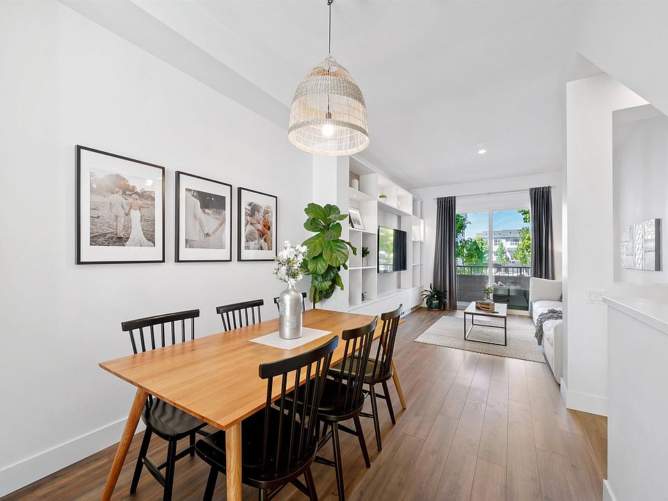 $40,000 in UPGRADES! Meticulously maintained 1251 sq ft 2 bed+ den/2 bath in one of the best locations in the complex, Seaside.This 3-level home features an office on the main level overlooking the fenced yard, perfect for remote work. Enjoy an open-concept kitchen with s/s appliances/integrated microwave & over-height windows. The bright living room boasts a custom media centre with California Closet built-ins, warm flooring, and crisp white walls, with sunlight streaming in from the west-facing patio. RARE fully finished garage includes epoxy flooring & EV charger. Upgrades include custom California Closets throughout, built in Murphy bed,wood blinds, EV charger+ epoxy flooring in garage.Resort like amenities ft. outdoor pool, fitness room, kids' room, and lounge.OPEN HOUSE Sun June 9 11:00 AM- 1:00 pm.