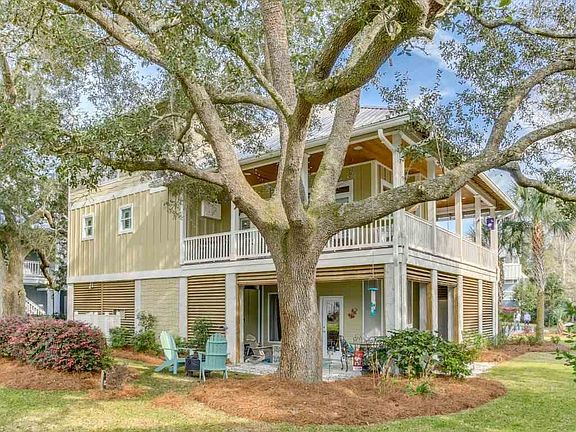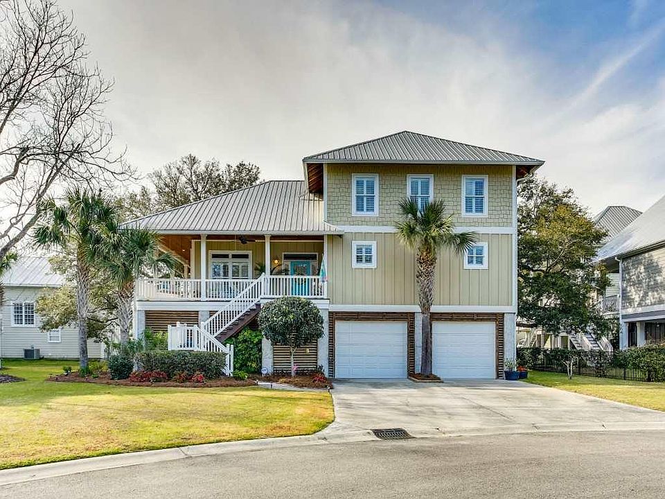 Bahamian influenced design meets Murrells Inlet charm and just a couple blocks from the Marshwalk. This three bedroom home is tucked under huge live oaks on a small low maintenance quiet cul-de-sac lot. Wrap around covered porches surround the great room that features a wood accented vaulted ceiling. Kitchen and dining combination adjacent to great room. Owners suite with walk in closet and double vanity. Upstairs there is an over-sized landing open and overseeing the great room and two spacious guest rooms with plenty of storage. First level offers two car garage, small workshop, storage, and a great artist studio or bonus room. Excellent neighborhood location in the heart of Murrells Inlet and minutes to beaches, waterways, and numerous golf courses.
