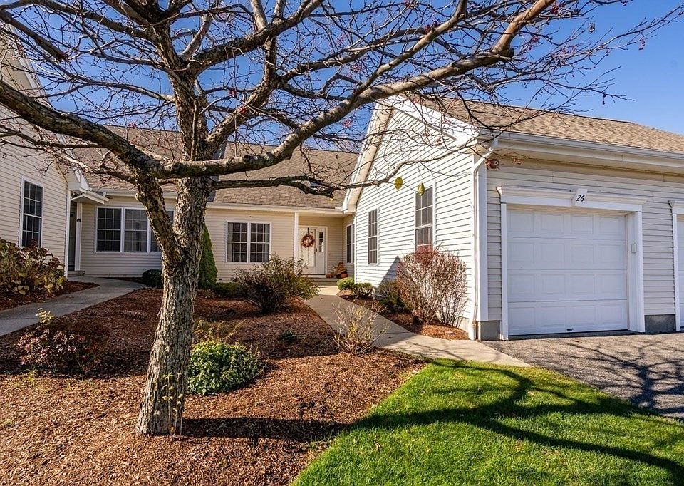 Welcome to the Village At Orchard Meadows! A 55 + community. One level living at its best. As you enter into the generous sized foyer with vaulted ceilings and skylight, you are led to a beautiful open floor plan. The formal dining room flows smoothly into the vaulted ceiling living room with a cozy gas fireplace. French doors leading to a bright and light-filled Sunroom overlooking the private grounds. The cabinet packed eat-in kitchen has new stainless-steel appliances, an oversized breakfast room with a vaulted ceiling and skylight, offering direct access to the one car garage. The Main bedroom has a soaring cathedral ceiling, walk -in closet, a large private bath with double sinks, and a walk-in shower. The guest room/study has an adjacent full bath with a tub. Freshly painted and new carpet throughout. New furnace in 2017, new hot water tank 2021. Large unfinished basement . Gas heat, low utilities, gazebo & clubhouse for activities. A new Market Basket and shopping minutes away.