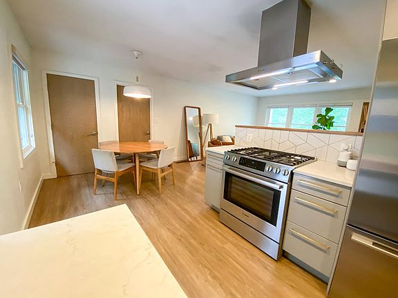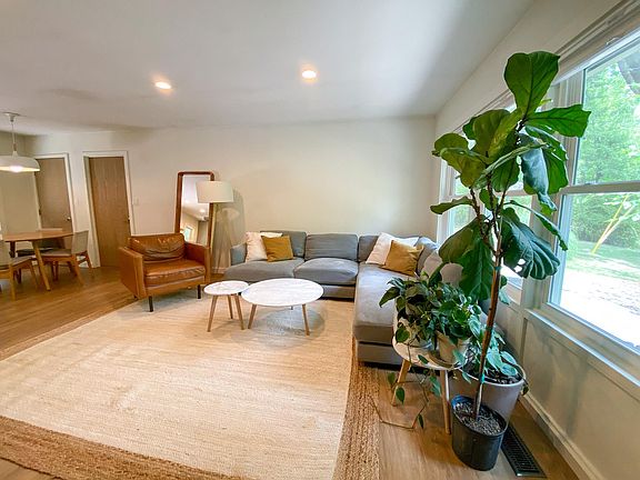 Sophisticated modern ranch home, nicely appointed with all furnishings, linens, kitchenware, and outdoor furniture for you to plug & play! This charming mid-century home has been stylishly renovated from top to bottom, including a new kitchen and bathroom. The house also features energy-efficient windows, appliances, and lighting. Three bedroom includes custom closets, currently configured as two queen-size bedrooms (one currently has a crib, but a queen bed can be swapped out as needed), and an office with a pull-out sofa. Attractive laminate flooring is durable and easy to keep clean, and amenities like central air and heat keep you comfortable year-round. The oversized fenced yard includes a deck, stone fire pit, and string lights for enjoyment day-to-night. Walk to nearby dining options like Dixon Roadside, Bear Cantina, and Cub Market. Located just a mile and a half from Woodstock town center, and less than a mile to Sunfrost Farm Stand for produce and other grocery goods. Enjoy this turnkey upstate retreat in Woodstock with flexible lease terms (a minimum of 3 months), starting Sept 1! Flexible lease terms (3 mo minimum)- price commensurate with length of lease agreement (example 3-5 months-$4500/mo, 6-12 months-$4250/mo, 12+ months $4000/mo). Dogs may be allowed on a case by case basis.