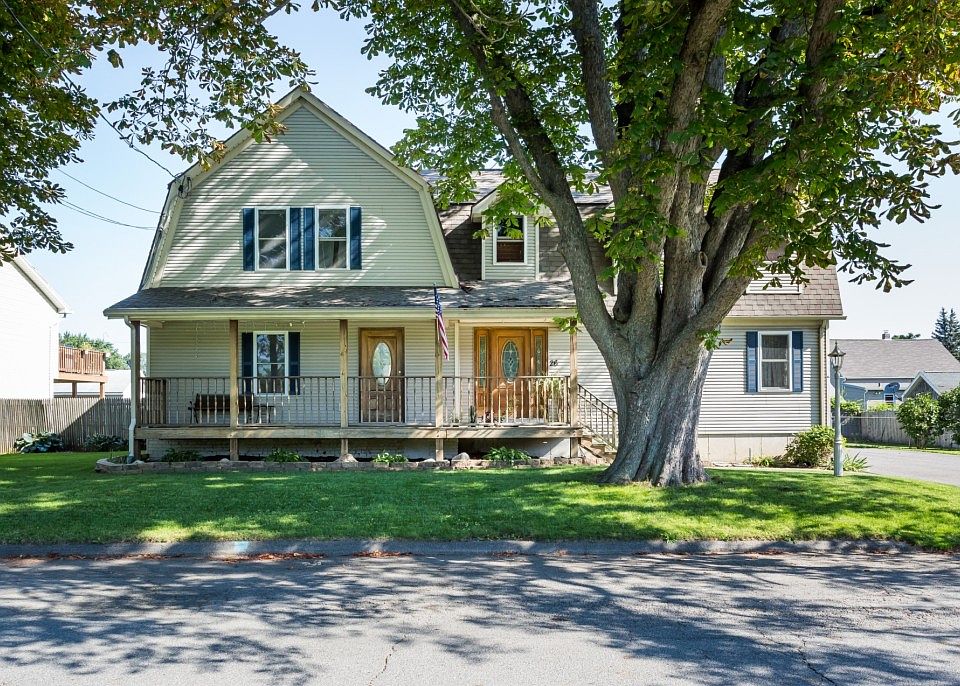 Experience this beautifully spacious updated Colonial home with many upgrades. Open concept main design w/ large living & stunning custom kitchen. Double ovens, counter range, double sink & vegetable sink, refrigerator, wine cooler, pendant lighting over breakfast bar, tiled backsplash, pantry & an abundance of cabinets are yours to enjoy many happy cooking experiences. Mudroom off the kitchen collects shoes & coats & leads to the back yard. Formal dining rm large enough for holiday meals & French doors with blinds between the glass lead outside. A family room with loads of space & full bath complete the 1st floor. Upstairs find 2 good-sized bedrooms & adore the master suite with his/hers closets & relaxing master bath. Shower with double heads, double vanity & jetted tub are all luxurious. Outside be impressed with a 2-story 900 sf 2nd house with heat, electric & water w/endless possibilities! New water tank, oil tank, refrigerator and second floor carpet. Newer electric panels.