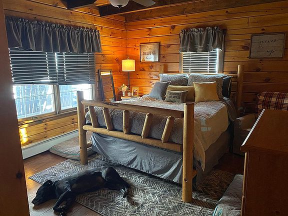 Turn-key, move in ready 3-bedroom log cabin, large garage, outdoor screen house, and 35 acres of land on dead end road. This three bedroom, one-bathroom log cabin with 1/2 loft has been meticulously taken care of and remodeled. Windows, flooring, bathroom, and laundry room have been upgraded. 1st floor laundry with two bedrooms, living room, kitchen and bathroom. Second floor bedroom with loft plus full basement. The kitchen has many cabinets for storage, stainless steel appliances and many work areas. Livingroom has a working wood fireplace for those chilly fall days. New heat pump in kitchen/living room installed in 2021 and updated wood boiler system (with the price of oil this winter, heating with wood will help). This home is right adjacent to snowmobile and four wheeler trails, and has its own walking/snowshoe trails throughout the land. Outdoor living includes a screen house with new flooring and covered lean-to attached to the garage for outdoor dining/fireplace/lounge area. Garage was built in 2018 and is 34 X 36 (including lean -to) and is heated. Enough room for two vehicles and recreational vehicles, and full upstairs storage room.