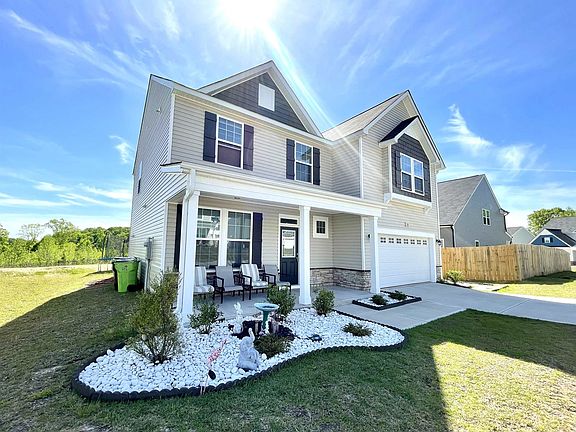 LOCATION, LOCATION, LOCATION!!! This beautiful open floor plan has it all! Just minutes from I-40, I-440 & downtown Raleigh, shopping, dining & fun! Peaceful position lot in this highly desirable subdivision backs up to trees to spend relaxing nights on your back patio. Open island kitchen, granite countertops, stainless steel appliances, gas burning stove, USB outlets throughout, FR surround sound hookups, back patio stereo wired, entertaining bar, elegant coffered ceiling DR, 2 story foyer, rocking chair front porch, huge owners suite, bath and walk in closet. Come make this gorgeous house your home!