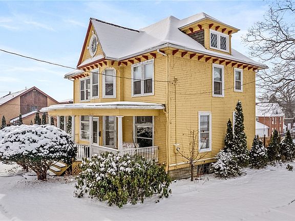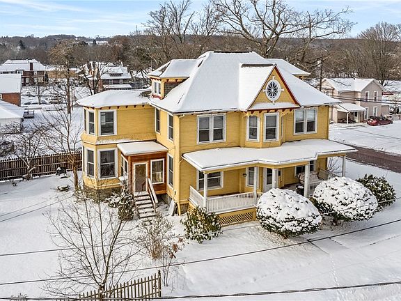 Victorian on the corner of Historical Eagle Street & N. Penn Ave. located just blocks from Thiel College & the downtown district. Your guests will feel welcomed as they approach the large front porch & enter the spacious foyer. Multiple rooms on the first floor present options for individualizing the space to suit every new homeowner. (offices, den, piano room, Fam.Rm., DR, etc.). The oak kitchen equipped w/recess lighting, prep sink, Corian counter, gas cooktop, elec, oven, laundry in closet for easy access. 2 sets of stairs--1st leads to primary BR w/full bath & dressing room or sitting room + add'l. BR & attic access/ 2nd set of stairs lead to the other 2 BR & 2nd full bath.