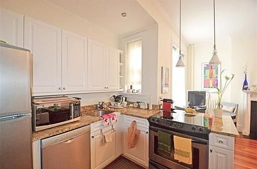 The truest example of Top Quality! You will not find a nicer One Bedroom Rental in Fenway for this price! Very spacious one bedroom with gleaming hardwood floors, large and open living concept, chef's quality kitchen with working and serving / breakfast bar, high end appliances, very tall ceilings, large and sunny windows, extra closet space, beautifully detailed fireplace, mantle, and moldings, luxurious custom-tile bath, this has it all! Located on the second floor of a highly-reputable condo association. Including Heat, Hot Water, Laundry Room! - Enjoy summer nights listening to the concerts at Fenway Park from one of the only roof decks in Fenway! To see it is to love it! Walking Distance To: Public Transportation, Longwood Medical Area, Kenmore Sq, Copley Sq, many top restaurants, grocery, nightlife, park, and more!
