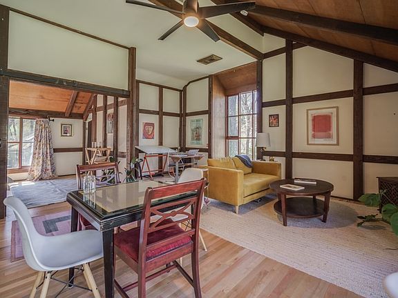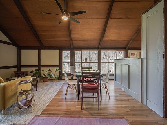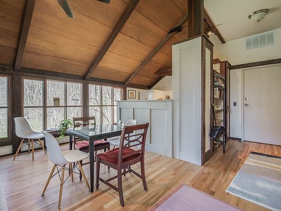 Tranquility welcomes you home on Pine Grove to a one bedroom wood and beam condo. Cathedral ceilings, large windows that allow natural light, and well maintained wood floors create continuity in this open concept living space. Newer quartz countertops and tile in the rennovated kitchen and bath. Convenient in-unit laundry, gas heat, central AC, and a detached garage with second floor storage. Also, a seperate outdoor parking space is available. The condos are pet friendly, have plenty of outdoor spaces to enjoy the surrounding conservation land, ponds and hiking trails. Accessible to downtown Amherst, route 9, public transportation, UMass and Amherst College.