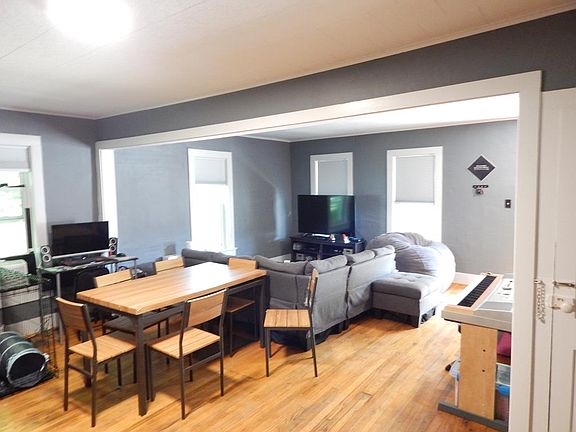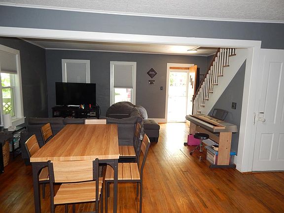 This house could be a 3 bedroom if needed. Hardwood floors throughout. Eat in kitchen has pantry & enclosed porch. Living room leads to den (formerly a bedroom-has closet and half bath). 2 bedrooms & full bath w/hall closet upstairs. Large fenced yard w/2 charming garden sheds, fruit trees & raised beds for flower or vegetable garden. Lot's of yard. Newer furnace & water heater in a dry unfinished. basement. Front porch has vinyl posts w/ rails & new composite decking. Showings start on 5/30/23. Additional photos available on Wednesday 5/31/23