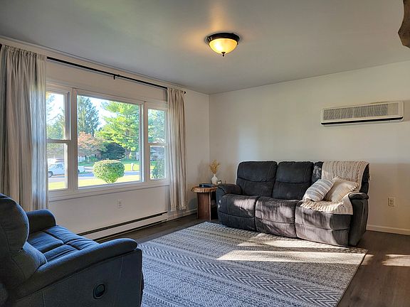 This multi-level home is at the end of a cul-de-sac street for plenty of privacy and has been well-maintained and updated throughout. The main level offers a bright and sunny living room, open kitchen with classic white cabinetry and dining area with doors leading to a screened porch for warm weather enjoyment. Upstairs there are three bedrooms and the family bathroom. The lower level provides a nice space for a home office or den with an adjoining full bathroom and laundry room combo. There is a finished basement as well for extra living space that would make a great family/rec room with brick and wood accent walls and a propane stove for a warm, comfortable feel. The yard is backed by farmland with country views and is a peaceful setting for gathering with friends and family or relaxing under the trees. One year contract, renews month-to-month after the first year.