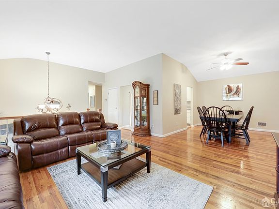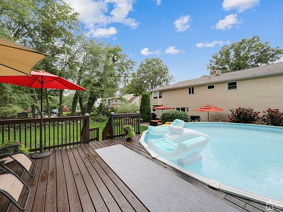 BACK ON THE MARKET! Beautifully well maintained 5 bedroom 2 full bath expanded bi-level with a 2 car garage, located in the very desirable Cranbury Manor community. Main level offers hardwood flooring throughout; kitchen with recessed lighting and a newer appliances; delightful dining area with ceiling fan; den located off of dining room with large windows offering views to the side yard and backyard, Cozy living room with large bay window; 3 bedrooms and full bath complete the main level. The second level of the home is just as impressive and features: 2 large bedrooms with sound proof walls, second full bath, a family room, laundry room and walk out to backyard oasis. Vacation at home with a gorgeous fully fenced above-ground salt water pool, large deck and almost a half of acre of land, lush garden and a feeling of complete privacy