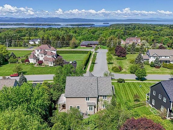 Experience Lake Champlain and Adirondack mountain views from this west facing custom designed home in a premier South Burlington location! This stunning colonial offers unique design elements that truly set it apart. An impressive two story grand foyer allows so much light to come through a wall of front facing windows as you enter this home. The first floor includes a three sided gas fireplace pennisula which divides the space between the living and dining room. Two sets of French doors lead to a private stone patio with pergola. The expansive kitchen has a center island, granite counters, red birch cabinetry and a cozy breakfast nook nestled inside a window seat. A first floor bedroom, guest bathroom, and mudroom complete the first floor. Up the staircase is a balcony loft with built-in bookcases. In addition to the two bedrooms and full bathroom on this floor, down the hallway is the master suite which offers stunning views of Lake Champlain and the Adirondacks from both the bedroom and en suite bathroom. A very spacious walk-in closet and a jetted soaking tub make this a refuge of convenience and relaxation. The lower level of this home has both a spacious recreation room and an exercise room with adjacent 3/4 bathroom. With a beautiful rear yard complete with mature trees, a hot tub and deck, there is so much space to relax and entertain family and friends this summer. Come view this distinctive home within minutes to Burlington, its amenitites and Lake Champlain.