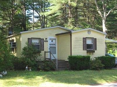 55+ COMMUNITY 2 bedroom 2 full bath mobile home on a quiet tree lined lot. Spaciuos living room featuring a gas fireplace with heat-o-later. Recent updates include a newer roof, furnace,vinyl kitchen floor, carport and oil tank. Enjoy the peace and quiet this park offers from your 3 season porch. $58,500