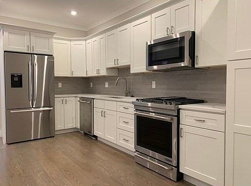 Have the chance to live in this gorgeous gut-renovated Newton home on a beautiful, tree-lined street! Massive sun-drenched 4.5-bed duplex with new high-end kitchen, new baths, floors, lighting, dual-zone heat/cool system, windows, and closets. Includes bonus home office with gorgeous views, private laundry room with new W/D, basement storage, fenced backyard, and off-street garage parking with additional resident street parking. Minutes to Newton Centre, Downtown Boston, express bus lines, and the commuter rail, as well as easy walking distance to Charles River trails, tennis courts, parks, schools, and shops!