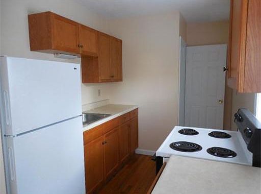 Three room, second floor apartment. Only one off street parking space. Includes stove and refrigerator. Rent includes heat and hot water.