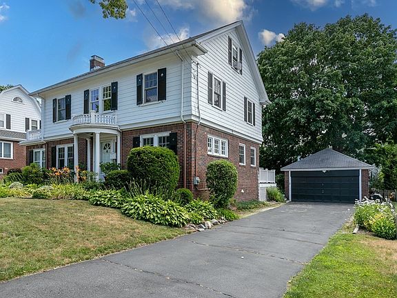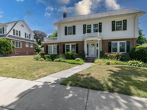 Elegant and stately spacious Colonial offers 4 bedrooms all with hardwood floors and main bedroom with walk-in closet & private tile bath! First floor consists of cabinet packed kitchen with gas range, beamed ceiling and hardwood floor, dining room boasts picture frame and crown molding as well as hardwood floor, cozy front to back living room with fireplace/wood stove insert also boast hardwood floors and beautiful natural wood picture frame and crown molding! Bright sunroom off living room and lovely patio off back of living room with French doors to both! 3rd floor is finished with hardwood and offers lots of bonus space for office, playroom etc. Beautiful mahogany deck and private back yard as well as a 2 car garage! OFFERS due Friday 7/15 by 12pm please