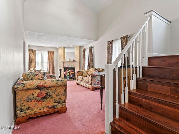 Outstanding opportunity to live in one of Howell's most popular neighborhoods! This 3 bedroom contemporary colonial offers a great floor plan. The large living room has vaulted ceilings, a full wall brick fireplace with stone mantle and a beautiful switchback style staircase with wood treads. The family room offers plenty space for a sectional or comfy, oversized furniture. The formal dining room includes a large bay window with seating. The eat-in kitchen has bright colored cabinets, all appliances and a sliding door to the rear patio. The master bedroom offers an en-suite full bath, ceiling fans and a skylight. Closet space is plentiful in all rooms. The garage includes new doors, overhead storage along with storage cabinets and workbench. Newer Windows, AC & Water Heater.