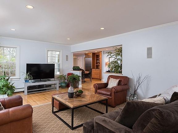 Nicely sited on a tree-lined wooded acre lot abutting conservation land, this expanded 4 BR colonial in the highly sought after Plymouth River cul-de-sac neighborhood offers a spacious floor plan perfect for family gatherings and everyday living. Generous flex spaces include a mudroom entry with a built-in window seat, sitting room and family room with bar area and glassed wall of windows overlooking the private fenced yard and in-ground heated pool. The second floor offers an oversized MBR en-suite with an attached home office or possible nursery and there are an additional 4 well-sized bedrooms. Additional features include: 400 s.f. finished lower level playroom, walk-up attic storage, outdoor shower. Located in the beautiful seaside community of Hingham which offers spectacular parks, harbor front activities and beach, the Shipyard, commuter rail and ferry to Boston, easy access to routes 3/53, Derby Street Shoppes, lots of boutiques &destination dining! First showings at Friday OH